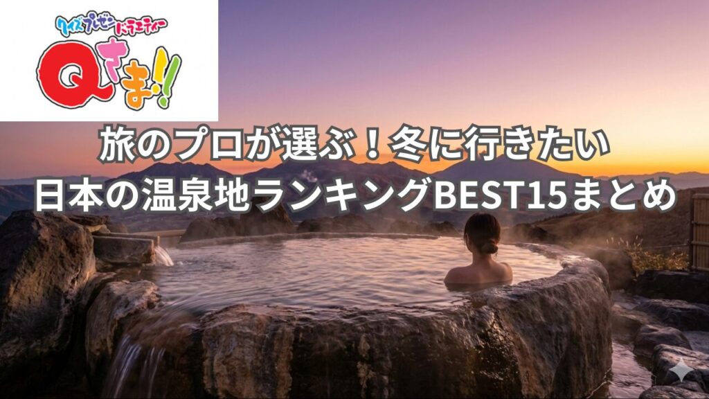 2026年2月9日放送『Qさま!!』で発表された「旅のプロが選ぶ!冬に行きたい日本の温泉地ランキングBEST15」をまとめました。銀山温泉・乳頭温泉郷・別府温泉など注目の名湯を一挙紹介。